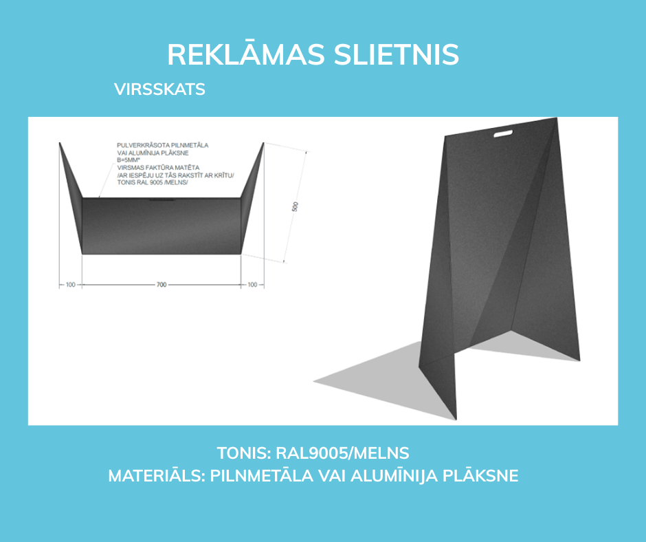 Saistošajos noteikumos ir iekļauta informācija, kurā noteikts slietņa vizuālais risinājums un tehniskie parametri. Izvietojot slietņus, to vizuālajam izskatam jāatbilst šiem nosacījumiem.