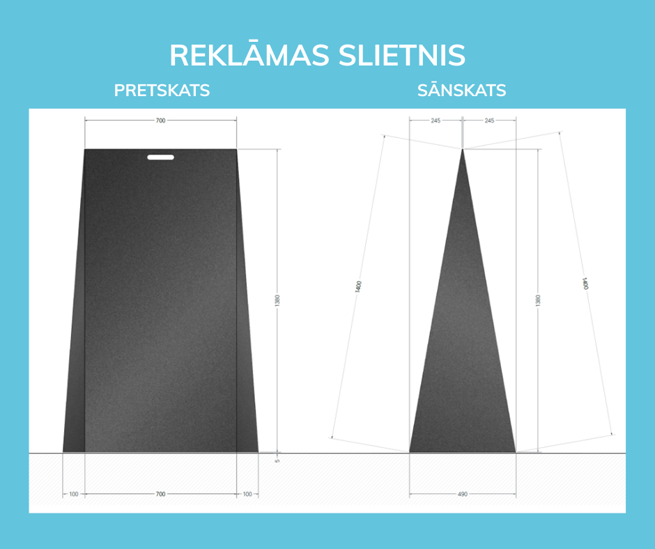 Slietņu izvietošana jāsaskaņo Būvvaldē. Izvietojot šo reklāmas objektu, jāatceras par gājējiem – ne mazāk kā 1,7 m no ietves vai celiņa platuma jābūt brīvai, lai nodrošinātu netraucētu gājēju plūsmu. Ja teritorijā vai uz ietves izvieto vairākus slietņus, tie jānovieto vienā līnijā. Uz slietņa aizmugures jānorāda par tā uzturēšanu atbildīgās personas telefona numurs.