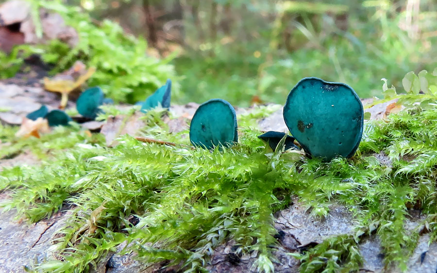 Kā norāda Meiere, daudzi sēņotāji un dabas vērotāji meža maigajos sūnu toņos bieži ir pamanījuši koka sprungulīšus košā, zilgani zaļā krāsā – tā ir “Gada sēnes” iekrāsota koksne.