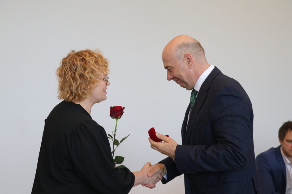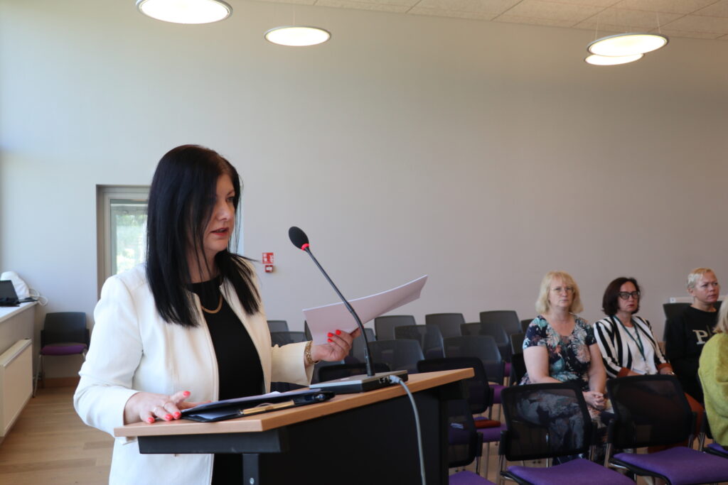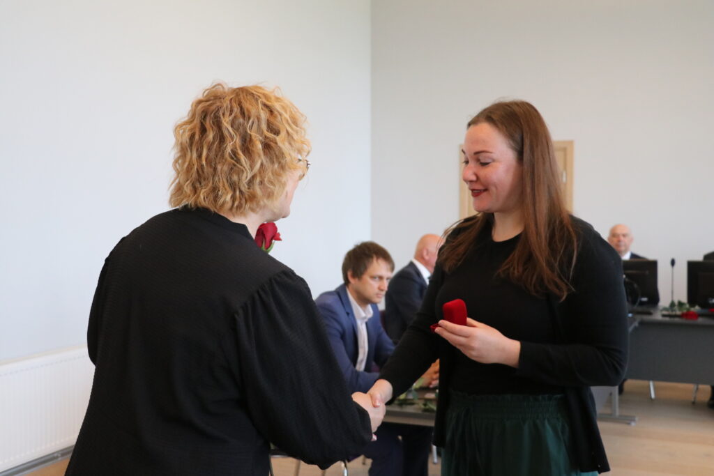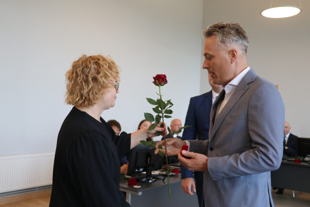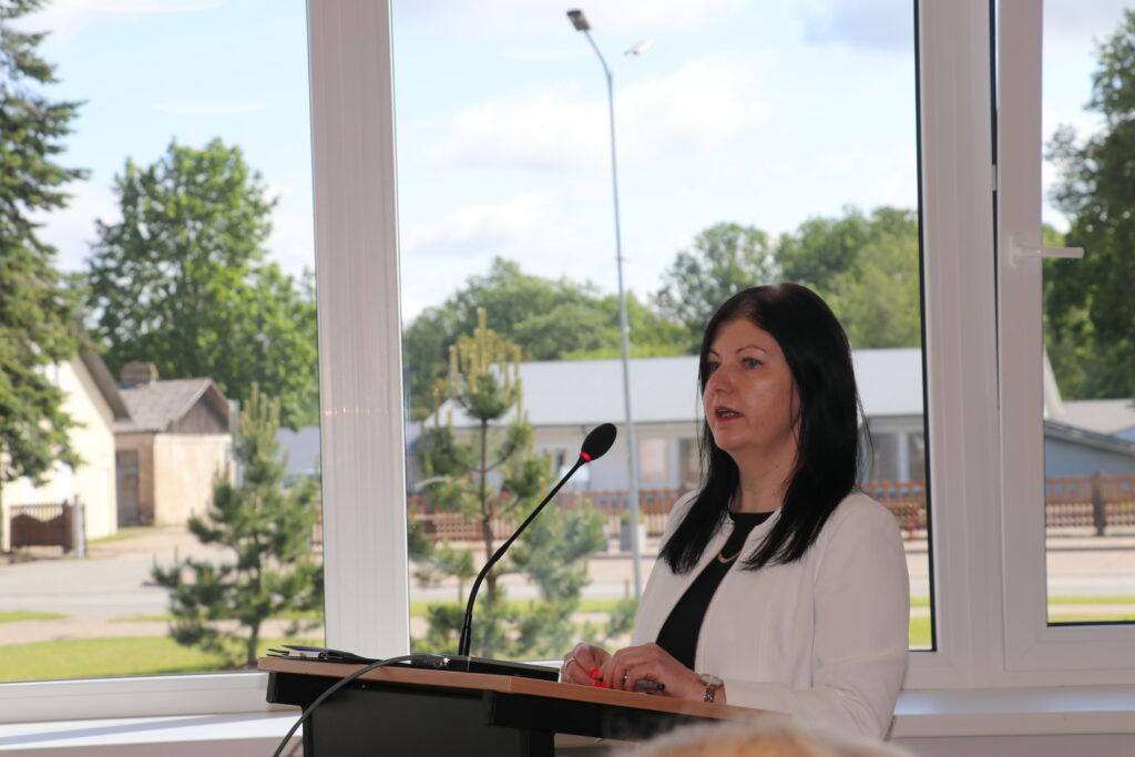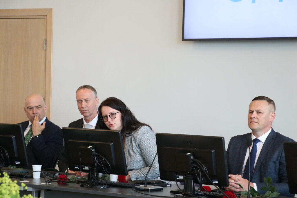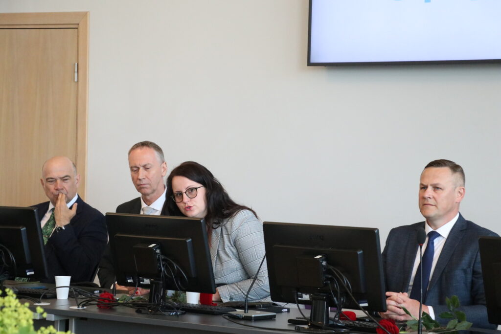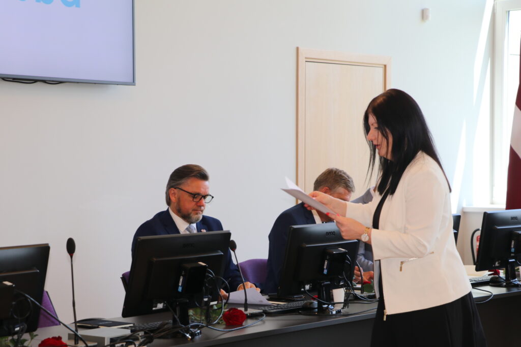 Pirmo domes sēdi vadīja Alūksnes novada vēlēšanu komisijas priekšsēdētāja Ilze Rubene.