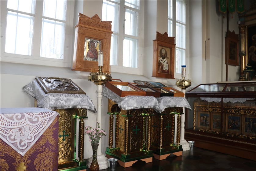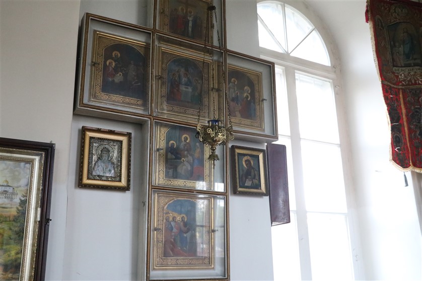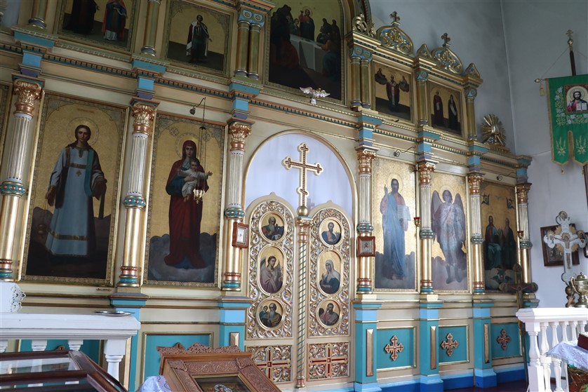 Divstāvu koka starpsiena ar 17 svētbildēm finansēta no vietējās draudzes līdzekļiem. Ap baznīcu – koka žogs uz akmens stabiem un lieli velvju vārti.