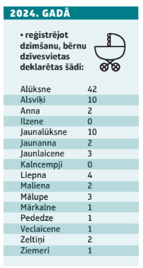 Ir vēl kāda skaista tradīcija – nu jau trešo gadu visus Alūksnes novadā dzimušos mazulīšus sveic kopīgā pasākumā Alūksnes Pilsētas svētkos, dāvinot īpašo Mazā novadnieka karotīti. “Alūksnes novada pašvaldība jau ilgtermiņā realizē brīvprātīgo iniciatīvu – vecākiem, kuru deklarētā dzīvesvieta mūsu novadā bijusi ne mazāk kā sešus mēnešus, piešķirt bērna piedzimšanas pabalstu, tā apmērs ir 40 % no minimālās darba algas – 2024. gadā tie bija 280 eiro, šogad jau 296 eiro. Šo pabalstu var pieprasīt pusgada laikā no bērna dzimšanas,” stāsta I. Ozoliņa. 2023. gads bija dvīnīšu zīmē – piedzima četri dvīņu pāri, bet 2024. gadā nesagaidīja nevienu dvīņu pāri.