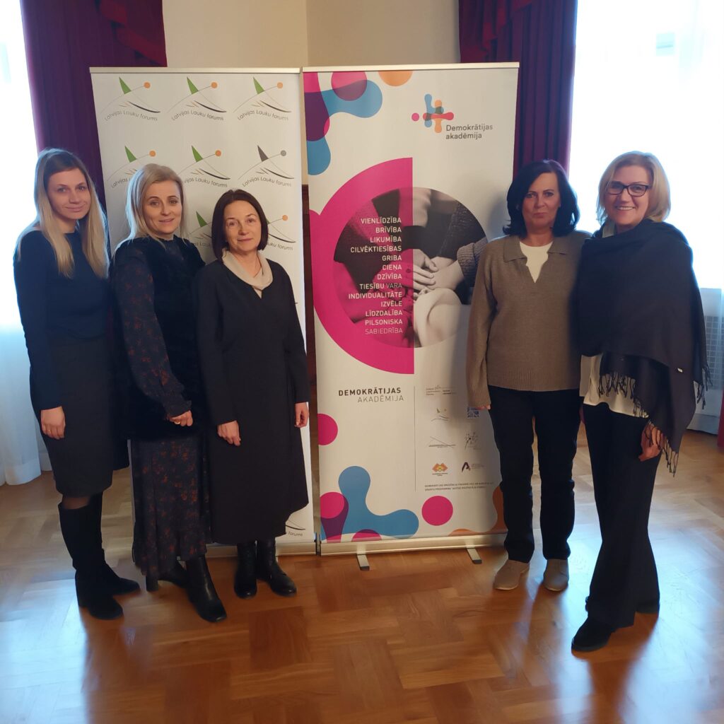 Šodien Rīgas pilī ar pirmo mācību dienu “Demokrātija un pilsoniskā sabiedrība Latvijā un Eiropā” atklāja izglītības projekts “Demokrātijas akadēmija”. “Demokrātijas akadēmija” piedalās arī Alūksnes un Apes novada fonda valdes priekšsēdētāja Dzintra Zvejniece, valdes locekle Indra Levane, fonda Uzraudzības padomes pārstāves – Apes tautas nama vadītāja Ilva Sāre un Smiltenes novada pašvaldības priekšsēdētāja vietniece Astrīda Haju. Attēlā arī Smiltenes novada Attīstības un plānošanas nodaļas vadītāja Ieva Dille.