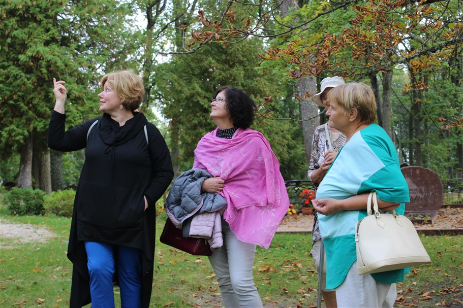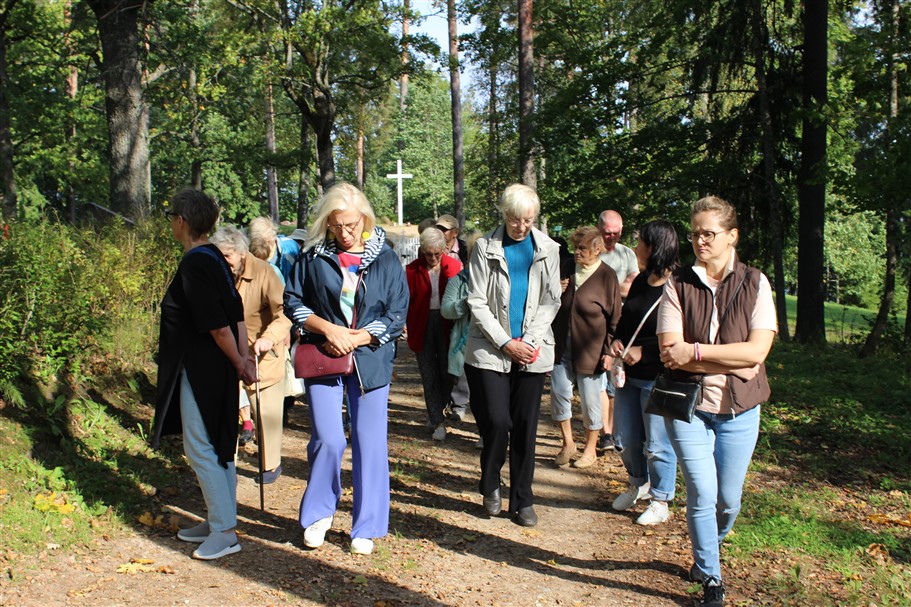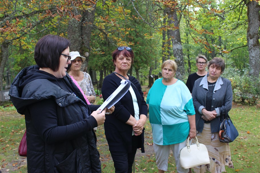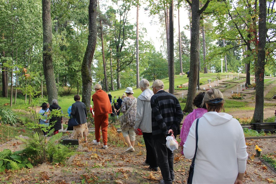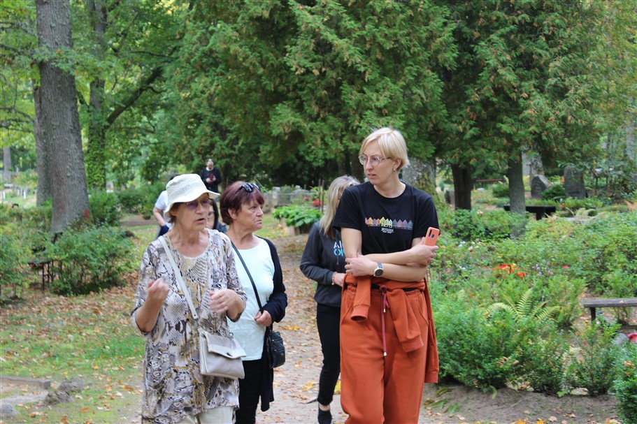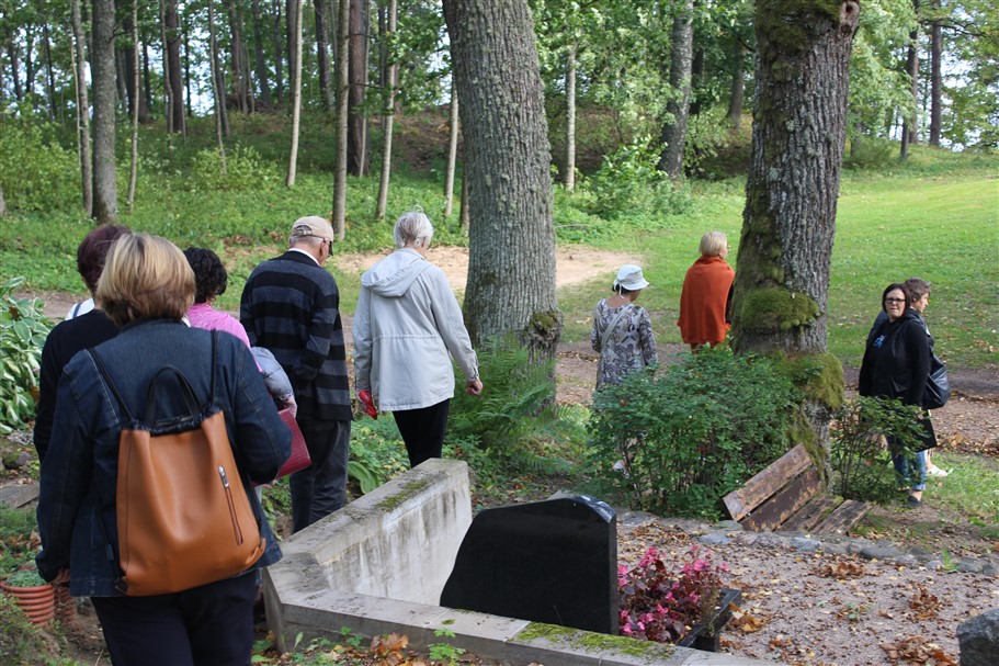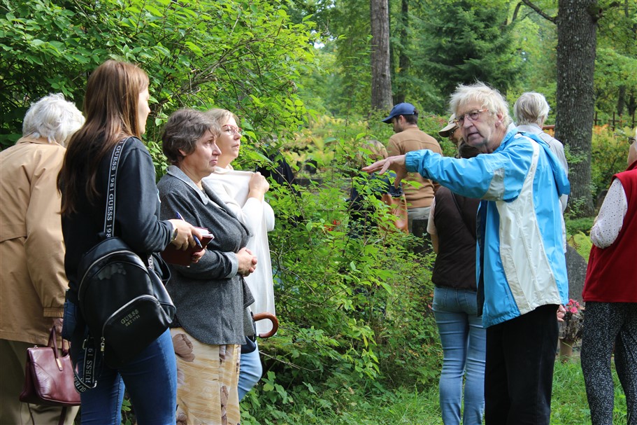 Gandrīz trīs stundu ilgajā pārgājienā interesenti ne tikai izstaigāja kapsētu un iegriezās kapličā, bet arī apmeklēja jauno lapeni un kapu pārvaldnieka namiņu.