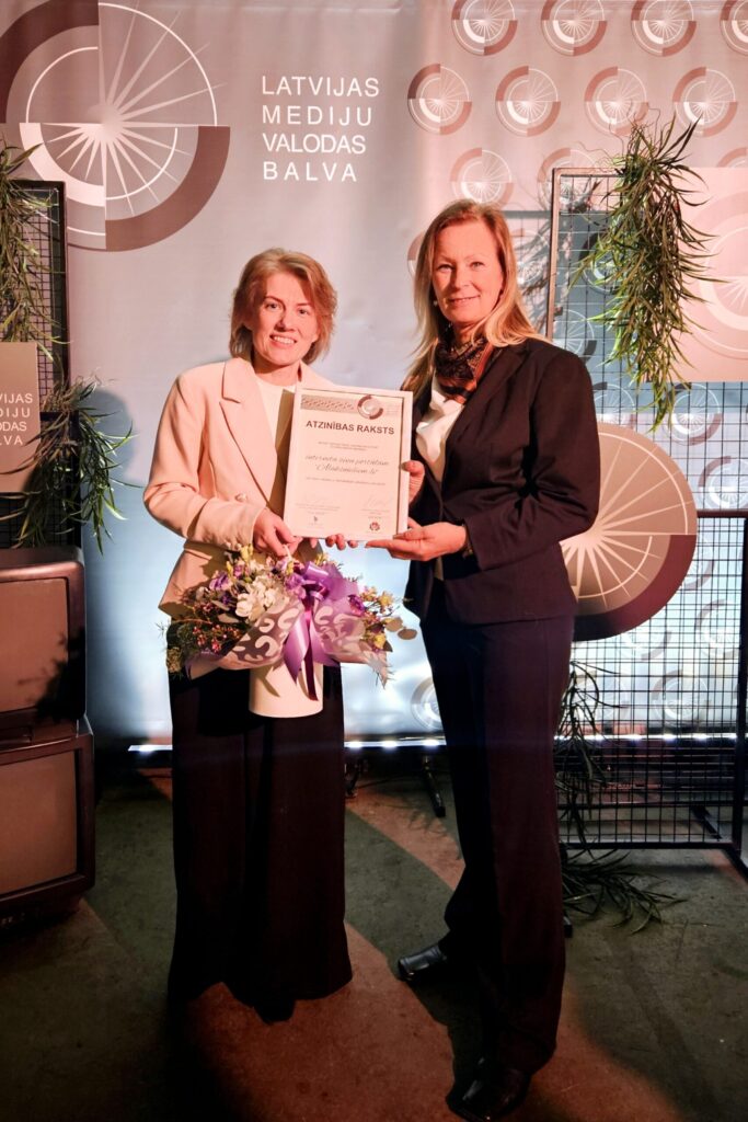Piektdien, 28. martā mūzikas un drāmas telpā “OratoriO” norisinājās akcijas “Latvijas mediju valodas balva 2024” laureātu, veicināšanas balvu, simpātiju balvas un mūža ieguldījuma balvas saņēmēju apbalvošanas ceremonija, kuru rīkoja Nacionālā elektronisko plašsaziņas līdzekļu padome (NEPLP) un Valsts valodas centrs (VVC).
