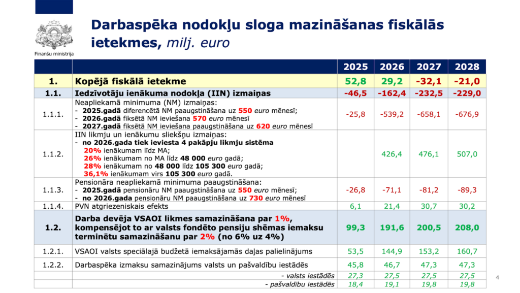 Secinājums: Augusta otrajā pusē FM sagatavotais un apturētais nodokļu izmaiņu scenārijs neparedzēja lielākus IIN maksājumus mazo algu saņēmējiem. Gluži pretēji – viņiem bija paredzēts nodokļu slogu mazināt.