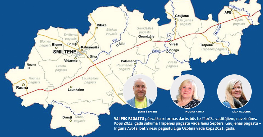 Smiltenes novada pašvaldības domes deputātiem jālemj – vai reformēt novadā esošās pagasta pārvaldes, apvienojot divas vienā. Izmaiņas skartu arī bijušā Apes novada pagastus. Plāns ir apvienot Gaujienas un Trapenes, Virešu un Grundzāles pagastus. Kopumā izveidotu četras pārvalžu apvienības. Apes pilsētas un pagastu pārmaiņas neskartu.