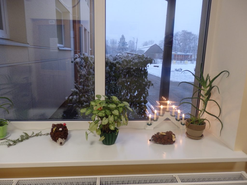 Arī aprūpes centrā ,,Pīlādži’’ ir tapuši vairāki Adventa vaiņagi – tie ir centra darbinieces Edītes Bindres darināti.