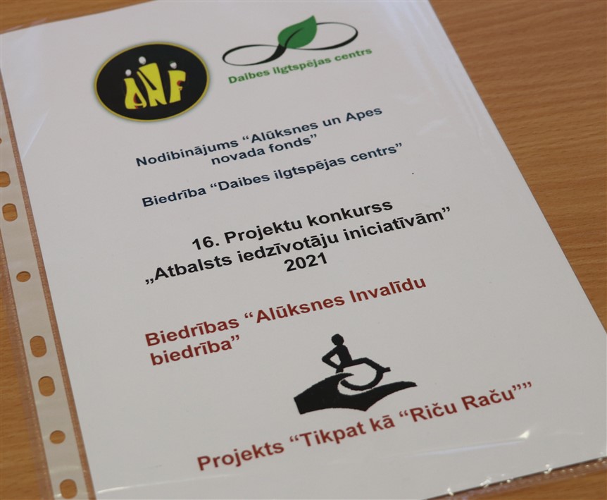 Spēles biedrība “Alūksnes Invalīdu biedrība” iegādājās Alūksnes un Apes novada fonda un Daibes ilgtspējas centra 16.projektu konkursā “Atbalsts iedzīvotāju iniciatīvām” projektā “Tikpat kā “Riču Raču””.