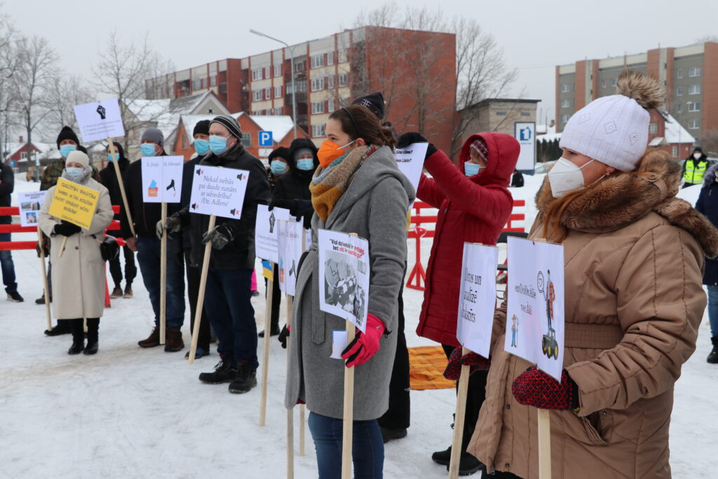 24.februārī laukumā iepretim Alūksnes novada pašvaldības ēkai ar plakātiem rokās bija pulcējušies vairāki desmiti cilvēku, kuri pauda nosodījumu pašvaldības iecerei slēgt teju visas mazās skolas pagastos, kā arī reorganizēt pilsētas skolas bez iepriekšējās diskusijas ar sabiedrību un iesaistītajām pusēm.