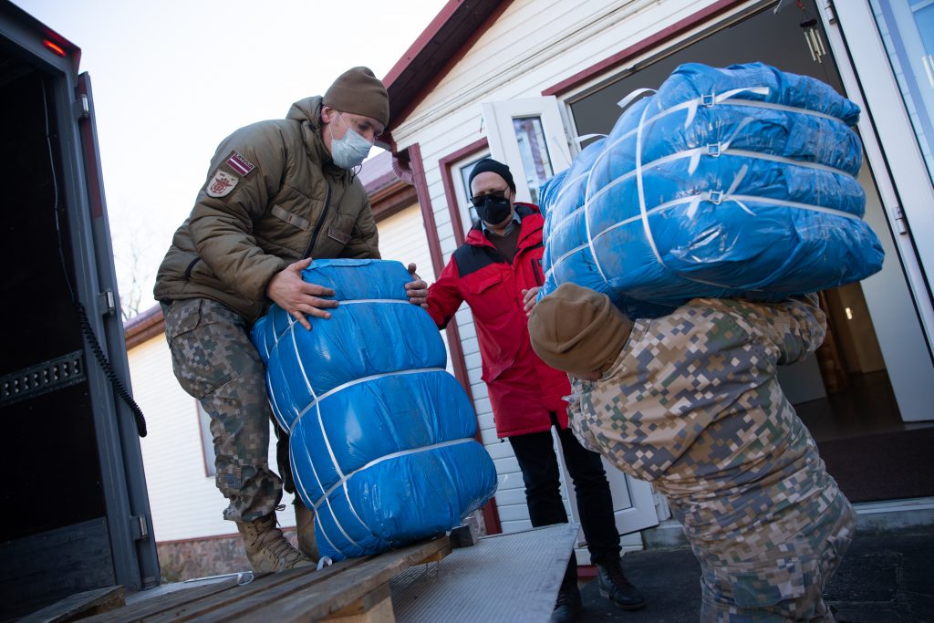 Latvija. Nacionālie bruņotie spēki vairākās Latvijas pašvaldībās nogādā Zviedrijas labdarības organizācijas “Erikshjälpen” sarūpēto humāno palīdzību, lai sniegtu atbalstu sociāli mazaizsargātajiem iedzīvotājiem – trūcīgām, maznodrošinātām ģimenēm un senioriem. Viļakas sociālais dienests. Foto: Gatis Dieziņš (Aizsardzības ministrija)