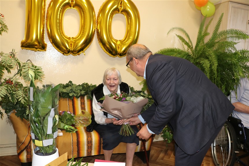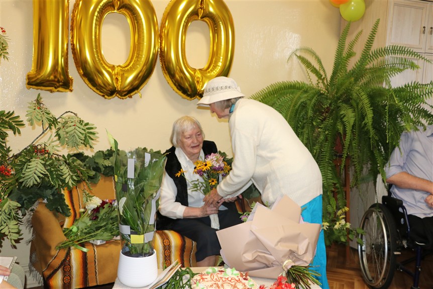 Šodien, 22. augustā, Elvīra Haka Alūksnes sociālās aprūpes centrā “Alūksne” svin savu 100. dzimšanas dienu. Ar viņu kopā ir dēls Einārs Haks, māsa Valija Tehta, viņas mazbērni un mazmazbērni. Sirmo kundzi lielajā jubilejā sveic Alūksnes novada pašvaldības, novada Dzimtsarakstu nodaļas, Sociālo lietu pārvaldes un pansionāta vadība. Ar īpašiem sveicieniem un muzikāliem priekšnesumiem ieradusies arī Septītās dienas Adventistu Alūksnes draudzes vadība un pārstāvji.