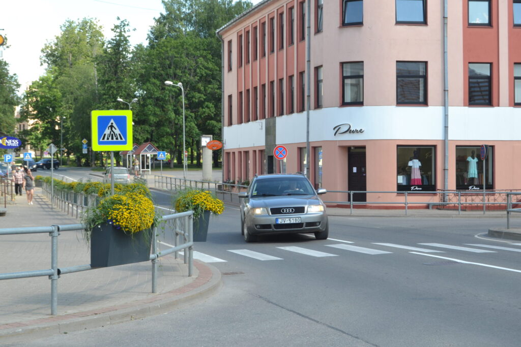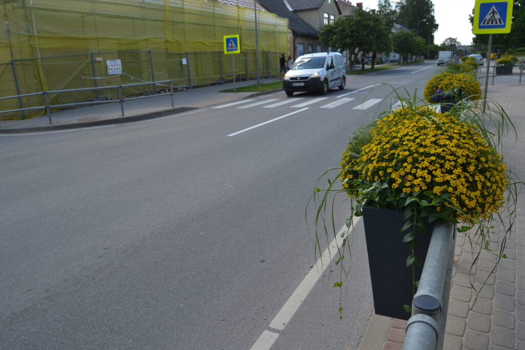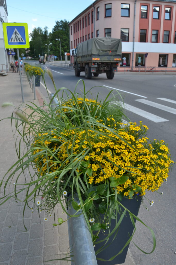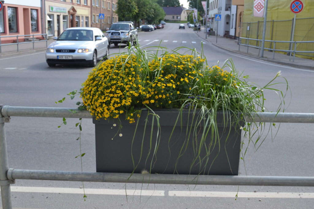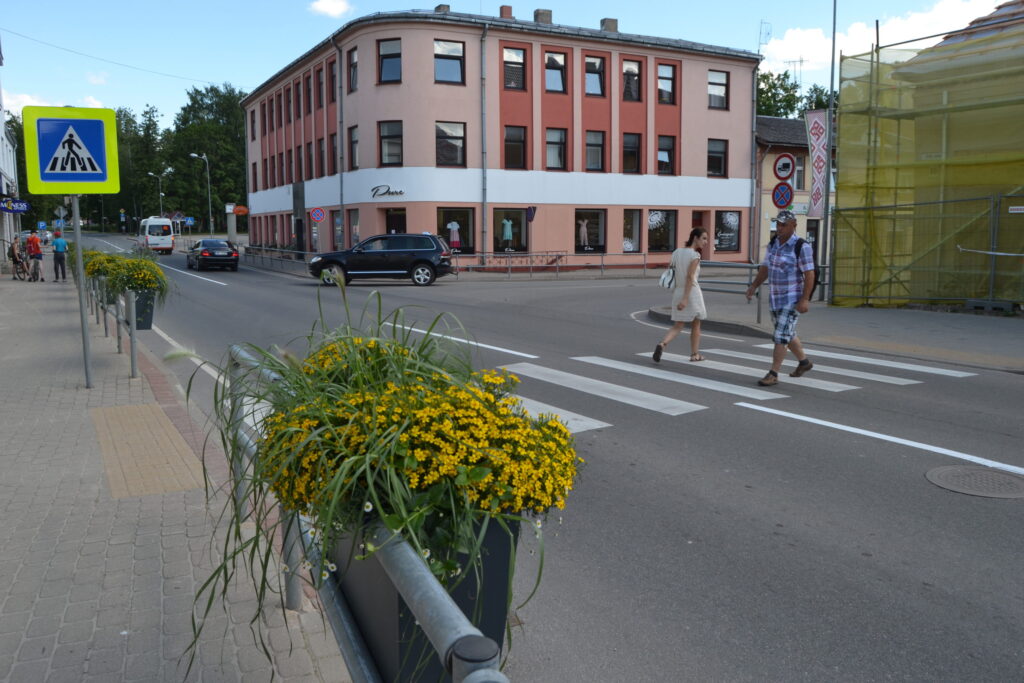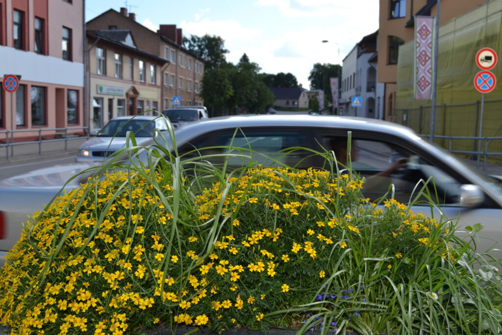 Alūksnes pilsētas centrā Pils un Lielā Ezera ielu krustojumā priecē ziedu kastes, kas iepriekš atradās uz Pils ielas iepretim Mazajai strūklakai. Tās piestiprinātas pie ielu barjerām līdzīgi kā iepriekš tika izvietoti puķu maisiņi. Skaisti, bet autovadītāji atzīst, ka šis skaistums traucē satiksmes drošībai.