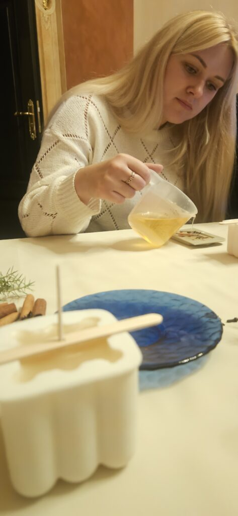 Meistardarbnīcu dalībnieki pagatavoja smaržīgu burbuļsveci un radošu vaska rotājumu, apliecinot, ka tas izdodas visiem! Tādēļ var rosīties arī mājās, sameklējot vajadzīgās sastāvdaļas interneta mājas lapās. Meistare Lāsma Kaupuža vien iesaka izvēlēties kvalitatīvu dabīgo augu vasku – rapšu vai sojas (tā izmaksas ir no 7 eur/kg). Vien jāizvēlas – gatavosiet konteinersveci vai stāvsveci – un jāizvēlas atbilstošs vasks, deglis un veidnes. Protams, var izmantot arī paša saimniecībā atrastus trauciņus. Meistare vasku kausē speciālā sveču vaska kausēšanas iekārtā, taču katrs pats mājās to var darīt ūdens peldē.