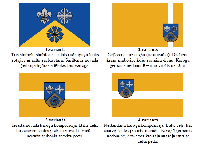 Līdztekus Smiltenes novada jaunā ģerboņa reģistrēšanas procesam, uzsākts darbs pie jauna novada karoga izstrādes. Lai izvēlētos novadam atbilstošāko karoga vizuālo noformējumu, pašvaldība aicina iedzīvotājus piedalīties aptaujā un balsot par sev tīkamāko karoga meta variāciju.