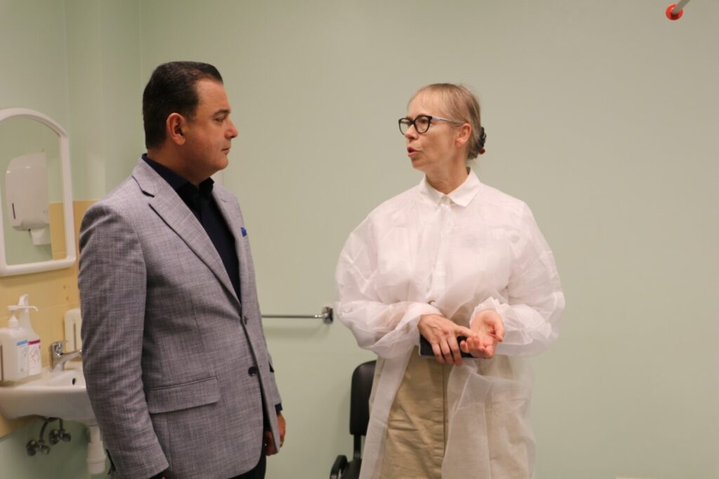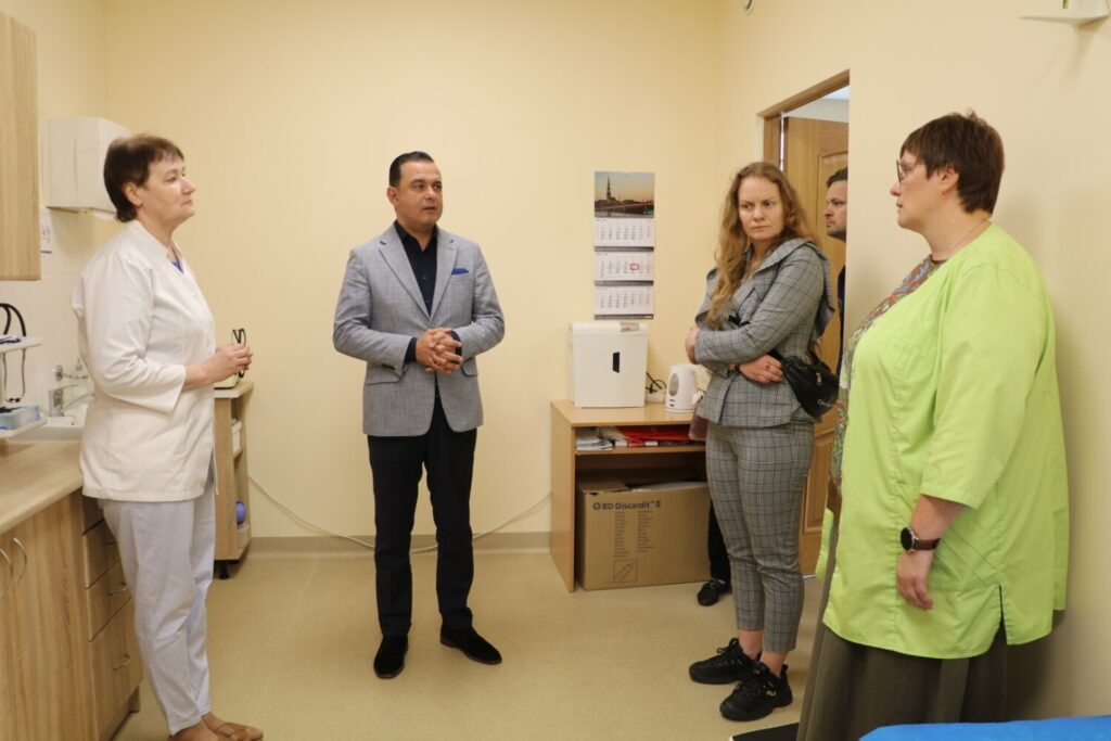Vizītes sākumā veselības ministrs Hosams Abu Meri kopā ar pašvaldības vadības pārstāvjiem domes priekšsēdētāju Dzintaru Adleru, priekšsēdētāja vietniekiem Aivaru Fominu un Druvi Tomsonu un pašvaldības izpilddirektoru Ingu Berkuli apmeklēja ģimenes ārstes Aritas Prindules praksi Jaunlaicenes pagastā. Ministrs iepazinās ar ģimenes ārstes prakses darbu, būtiskākajām problēmām, kas saistītas ar speciālistu pieejamību, laboratorisko analīžu veikšanas ātrumu diagnostikas vajadzībām, dažādām situācijām medicīnas dokumentācijas noformēšanā, informē pašvaldības sabiedrisko attiecību speciāliste Evita Aploka.