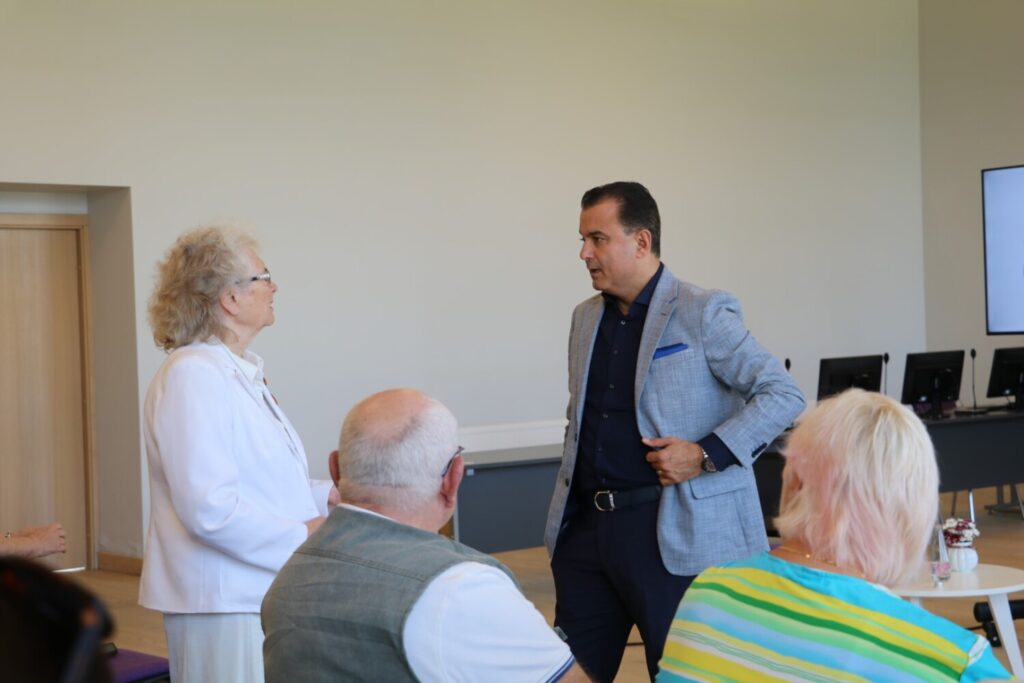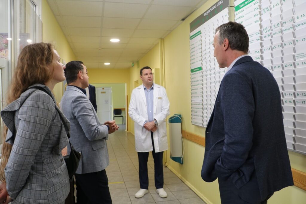 Turpinot iepazīšanos ar veselības aprūpes iestādēm, ministrs apmeklēja SIA “Alūksnes primārās veselības aprūpes centrs”, kur tikās ar valdes priekšsēdētāju Rolandu Puriņu un ģimenes ārstu Alvi Ādamsonu. Ministrs novērtēja poliklīnikas darbības modeli, kur vienuviet pieejami gan ģimenes ārsti, gan speciālisti un laboratorijas pakalpojumi. A. Ādamsons sarunā ar ministru pauda bažas par speciālistu pieejamību uz vietas nākotnē. Ministrs prognozēja, ka pēc 5-6 gadiem medicīnā būs vairāk jaunā personāla, cits jautājums – kā šos speciālistus piesaistīt darbam reģionos. Poliklīnikā ministrs apmeklēja arī zobārstniecības praksi “Amālija 2020”, kas ir vienīgā Alūksnes novadā, kas sniedz bērniem valsts apmaksātos zobārstniecības pakalpojumus.