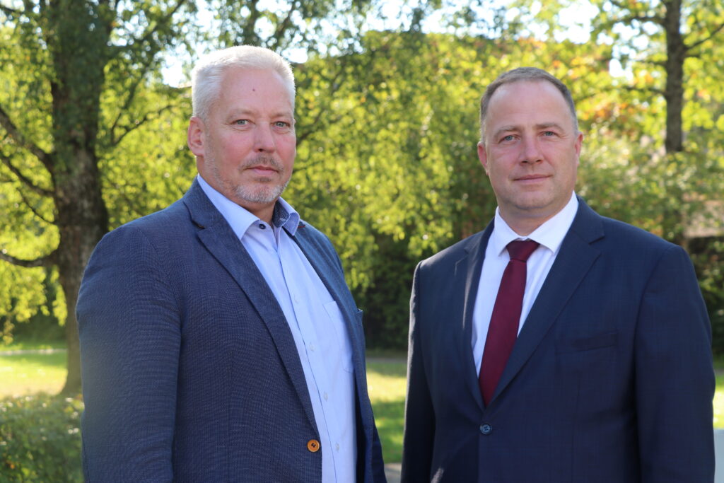 NORMUNDS ŠMITS (no kreisās) un Ģirts Krūmiņš uzteic Alūksnes attīstību, uzņēmumus, kuri dod iespēju vietējiem iedzīvotājiem strādāt, un mūsu pilsētas sakoptību.