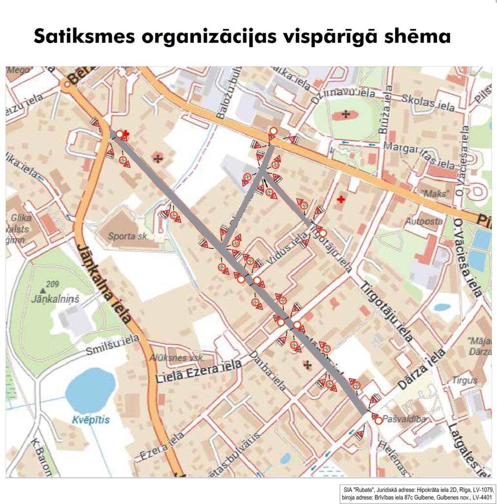 Būvdarbu laikā satiksmes plūsmu nodrošinās atbilstoši saskaņā ar izstrādātajām satiksmes organizācijas shēmām. Būs nodrošināta iespēja piekļūt pārbūves posmiem piegulošajās teritorijās. Gājēju zona būs norobežota ar barjerām vai vadstatņiem.