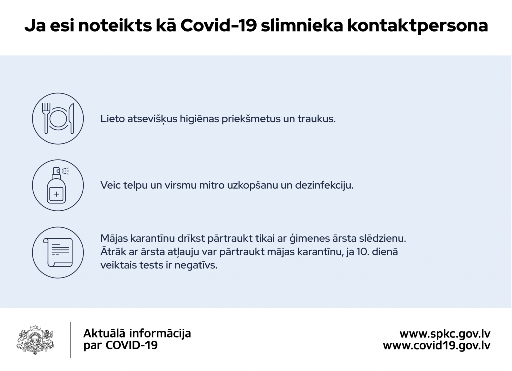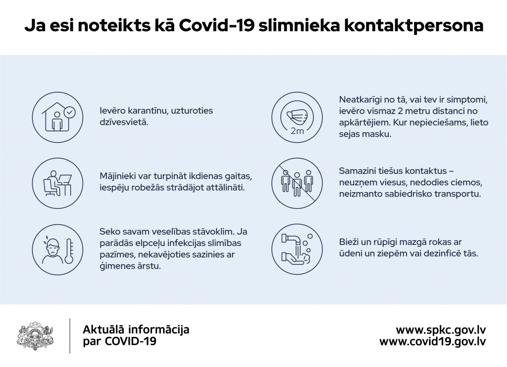 SPKC speciālisti ir sagatavojuši arī konkrētas norādes (pdf), kas jāievēro kontaktpersonām.