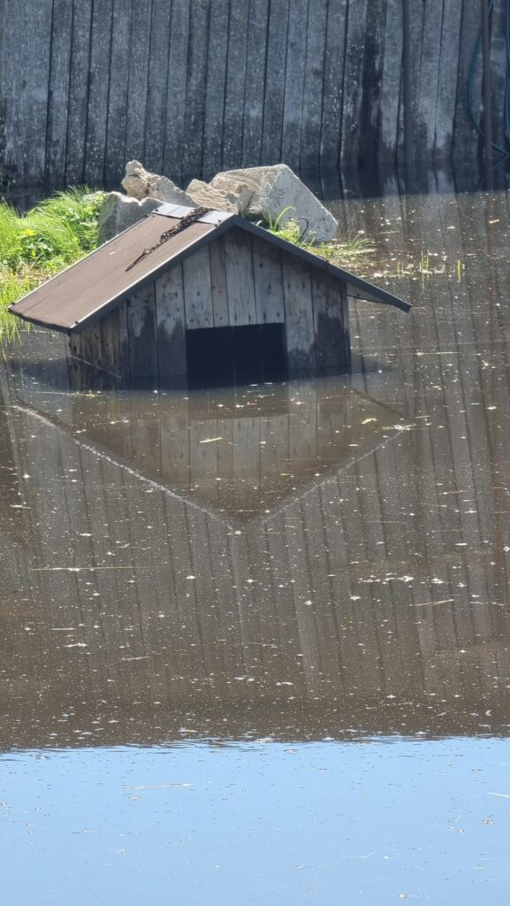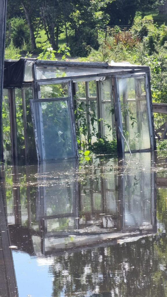 Attēlos – Ritas kundzes atsūtītās fotogrāfijas, kurās fiksēts viņas applūdušais dārzs vasaras garumā, kaimiņu īpašums Helēnas ielā 38A, kur pēc sestdienas lietavām peldējusi siltumnīca un suņu būda, kā arī R. Džaļilova atsūtītā fotogrāfija, kur vērienīgos plūdus rāda no putna lidojuma.