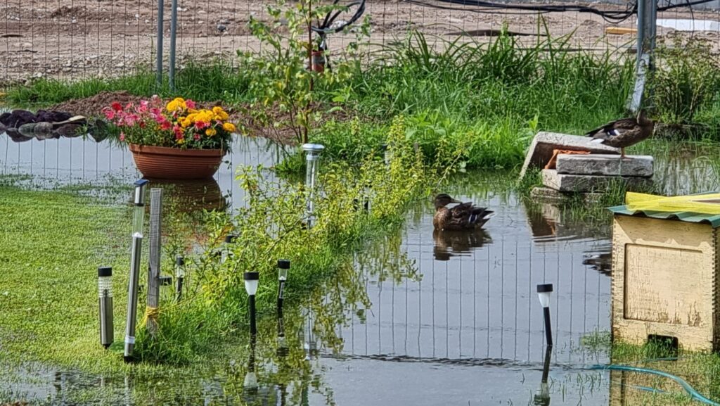 Tagad lietus mitējies, bet topošā Izglītības un sporta centra kaimiņiem dārzi vēl lāmās. Pēc lielajām lietavām, kas pārsteidza sestdien, redakcijā vērsās alūksnietis Rafiks Džaļilovs, kurš dzīvo uz Helēnas ielas līdzās topošajam Izglītības un sporta centram, sūdzoties par applūdušo apkārtni un to, ka uz signāliem par kritisko situāciju neviens Alūksnes novada pašvaldībā uzreiz neatbildējis. Viņam pašam viss kārtībā, taču iedzīvotājs iestājas par kaimiņiem.