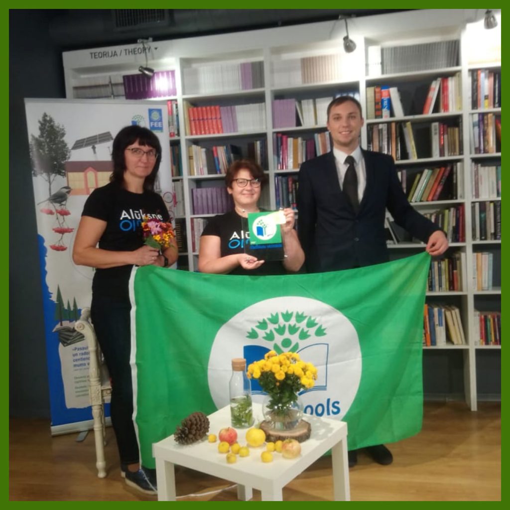 Ikgadējais Ekoskolu apbalvošanas pasākumā, kas notika vakar, 110 izglītības iestādes saņema starptautisko Zaļo karogu, bet 52 – ieguva Latvijas Ekoskolas sertifikātu. Alūksnes PII “Sprīdītis” ir pirmie un šobrīd vienīgie Latvijā, kas ieguvuši augstāko Ekoskolu novērtējumu – Vēstnieku statusu. Apbalvošanas pasākumā piedalījās iestādes Ekoskolas koordinatore Anta Apine un Ekopadomes locekle, skolotāja Sanita Strakša.