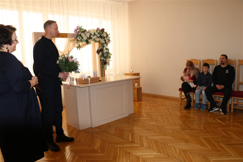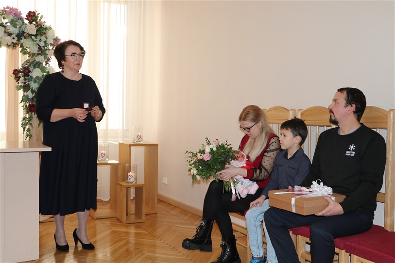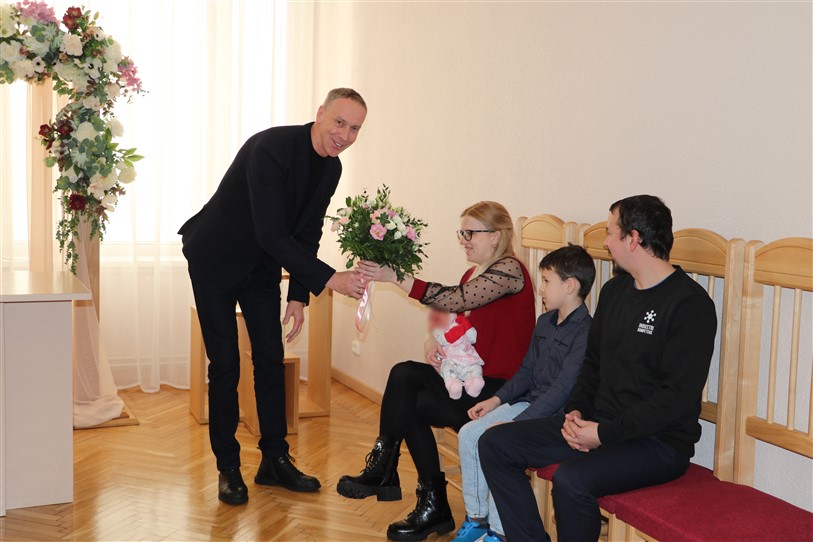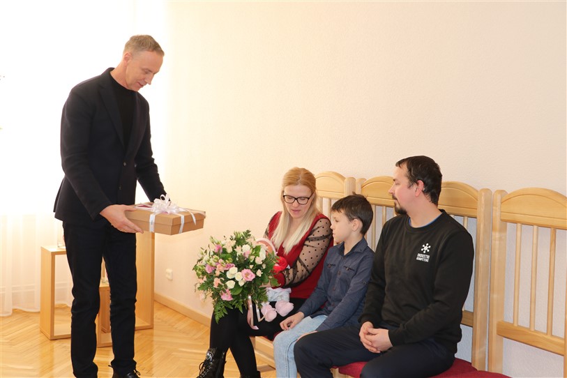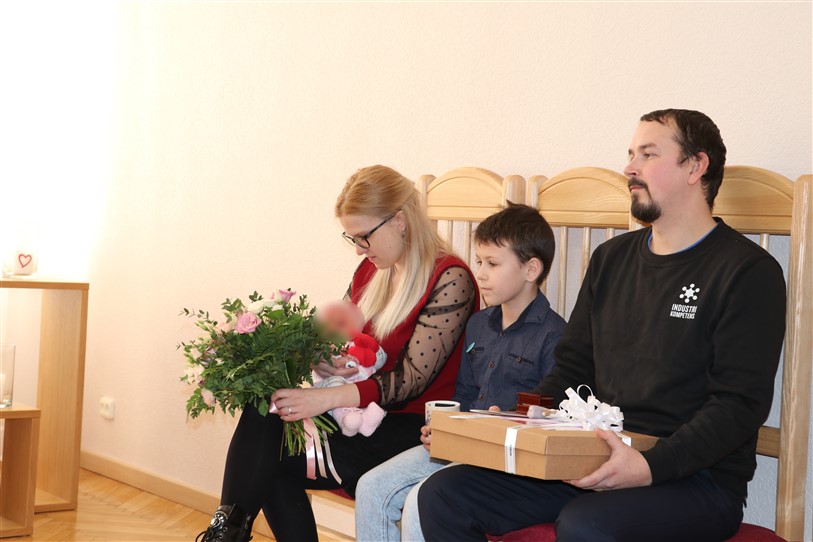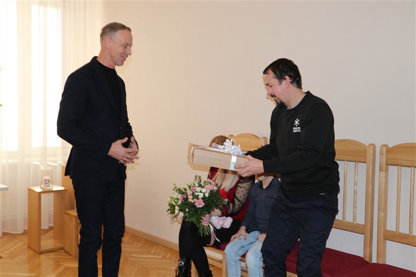 – Lepojamies ar katru mūsu novada iedzīvotāju. Ar lielu prieku raugos uz jūsu ģimeni, kur šis jau ir otrais bērniņš. Mūsu valstij ir ļoti svarīgi, lai iedzīvotāju skaits pieaug. Novēlu jūsu ģimenei izturību, veselību un mīlestību! – sveicot mazās Annijas ģimeni, sacīja Dzintars Adlers.