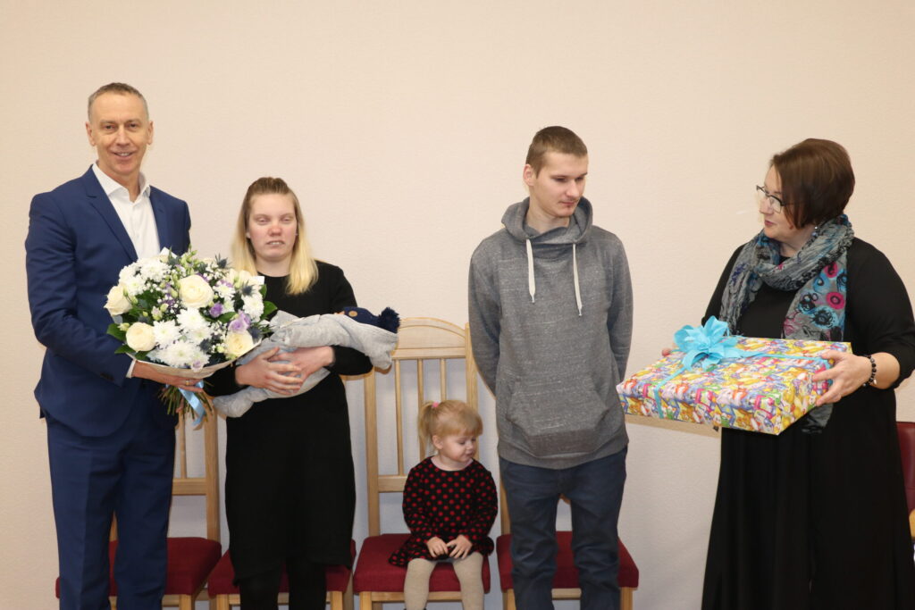 Šodien Alūksnes novada pašvaldības domes priekšsēdētājs Dzintars Adlers un Alūksnes novada Dzimtsarakstu nodaļas vadītāja Inga Ozoliņa svinīgi sveica pirmo 2025. gadā dzimušo un Dzimtsarakstu nodaļā reģistrēto Alūksnes novada mazuli. Īpašais gods kļūt par Alūksnes novada 2025. gada pirmo mazuli ir 6.janvārī dzimušajam Robertam Spēlītim – otrajam bērniņam Evas Ziemeles un Maira Spēlīša ģimenē. Mazulīša ģimene svinīgajā brīdī no pašvaldības saņēma siltu vilnas sedziņu un spēka piekariņu ar latvju rakstu zīmēm.
