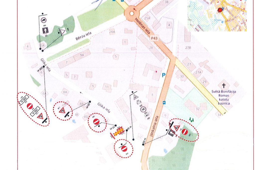 Ūdensvada izbūves laikā slēgts Glika ielas posms