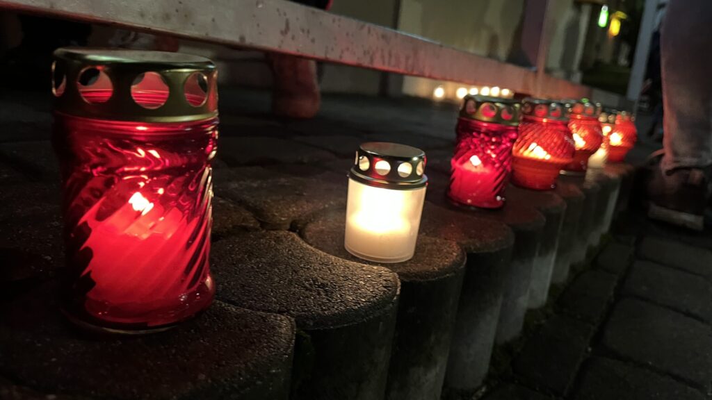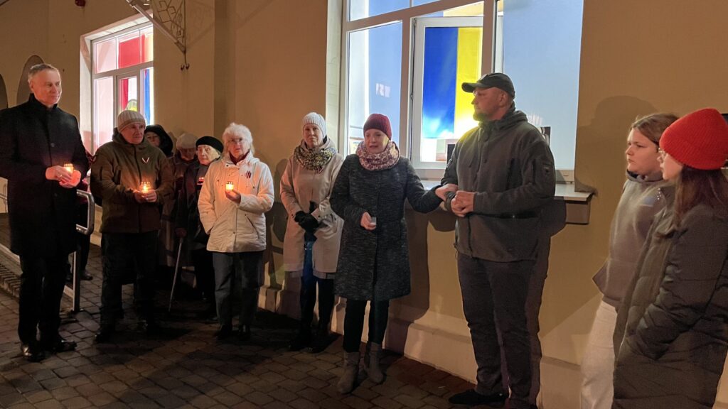 Otrdienas vakarā Alūksnes novada pašvaldības ēka bija izgaismota Ukrainas karoga krāsās, bet pie Alūksnes novada Sabiedrības centra pulcējās cilvēki, lai vienotos klusuma brīdī un aizdegtu sveces. Vieta nebija izvēlēta nejauši, jo tieši Alūksnes un Apes novada fonds, kura mājvieta ir Sabiedrības centrā, visu šo laiku aktīvi iesaistījies palīdzības sniegšanā Ukrainai. Notikušas vairākas ziedojumu vākšanas akcijas, Ukrainā nogādātas palīdzības kravas un uz kara skarto valsti devušies vairāki automašīnu konvoji. Atgriežoties Latvijā, alūksnieši atveduši karogus, kas 1000. kara dienā rotāja Sabiedrības centra logus.