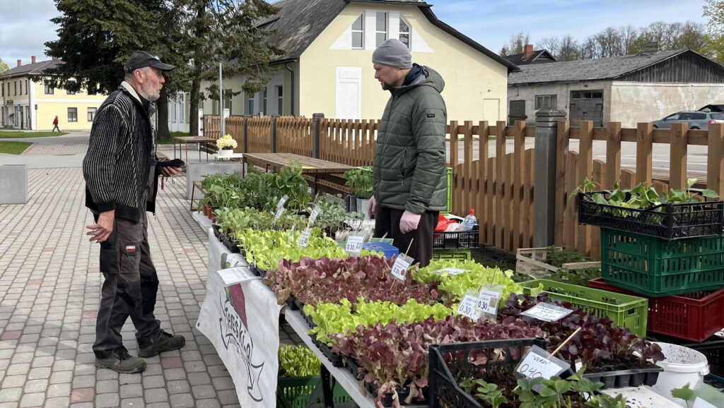 “Pagaidām grūti saprast, kā te turpmāk ar tirgošanos būs. Iekārtu te nekādu nav, paņēmu līdzi tikai savu galdu, kas gan arī tikai nepieciešams, lai iesaiņotu pārdodamo preci. Pēc savas pieredzes varu teikt, ka prece, kas izvietota kastēs uz zemes, pircējam ir labāk pārskatāma, nekā tad, ja garšaugi, daudzgadīgās puķes, tomātu, gurķu stādi un cits stāv uz galda,” saka Alsviķu pagasta zemnieku saimniecības “Auziņas” īpašnieks Silvis Samiņš. Viņš no pircējiem par jauno tirdzniecības vietu dzirdējis dažādas atsauksmes – citi esot izbrīnīti, citi paņirgājoties un jautājot, kur tad tā pašvaldības domes priekšsēdētāja sociālajos tīklos izrādītā smukā nojumīte. Deputāti nolēmuši, ka iedzīvotāji savu saražoto produkciju te tagad var tirgot, nemaksājot pašvaldības nodevu par šo vietu. “Vecajā tirgus laukumā bija jāmaksā par tirdzniecības vietu, te tā pagaidām ir par brīvu… Pieļauju, gan jau būs jāmaksā, kad vēlēšanas beigsies…” domā S. Samiņš.