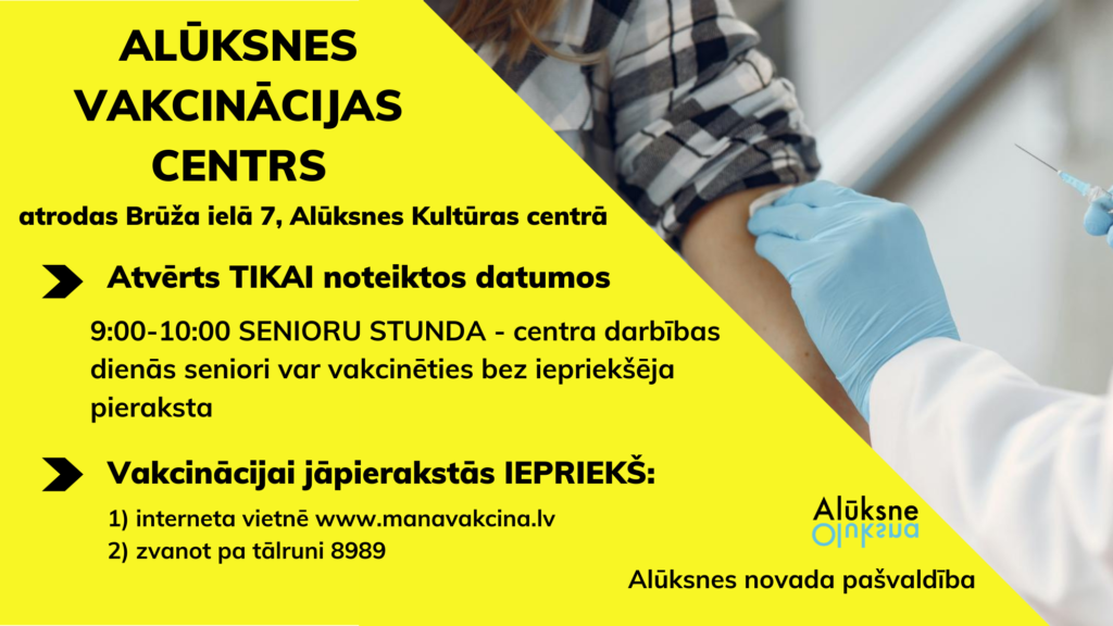 Svarīgi, ka Alūksnes vakcinācijas centrā vakcinēties pret COVID-19 ir iespējams ikvienam Alūksnes un apkārtējo novadu iedzīvotājam. Aicinām par iespēju vakcinēties informēt arī savus ģimenes locekļus, tuviniekus un kaimiņus!