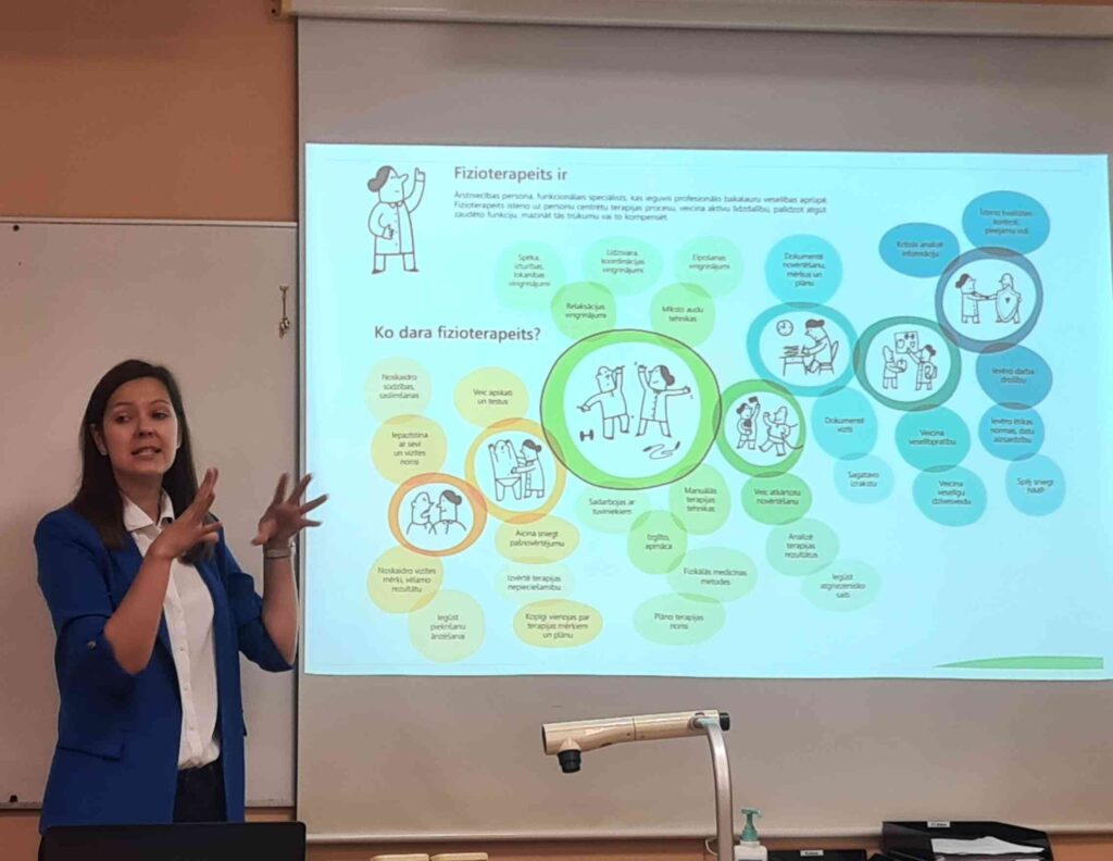 Arita Bērziņa iepazīstināja ar fizioterapeita darba specifiku, ar to, cik svarīgas ir regulāras ikdienas kustības, vingrošana, kā fizioterapija var palīdzēt cilvēkam pie muskuļu un locītavu sāpēm, kā var ārstēt slimības, kas saistītas ar kustību traucējumiem, kā arī ar fizioterapeitu darbības jomām pediatrijā, neiroloģijā, traumatoloģijā, sporta fizioterapijā, u.c. Nodarbību laikā tika apgūts arī vingrojumu komplekss kakla muskuļu stiepšanai, plecu un roku atslābinošie vingrojumi pēc ilgstoša darba pie datora vai kādas viedierīces. Jolanta Umure pastāstīja par savu ceļu no ģimnāzijas skolas sola līdz izvēlētajai specialitātei. Jauniešiem bija ļoti daudz jautājumu par neirologa darbu. Saruna notika par neiroloģiskiem traucējumiem un iemesliem, kas tos izraisa – infekcijas slimības, traumas, alkohola lietošana, insults, ģenētika. Ernests Mednis dalījās pieredzē par studiju gaitām, kas pieredzētas, ceturto gadu mācoties Rīgas Stradiņa universitātē, kā arī paralēli strādājot slimnīcās, šobrīd Alūksnes slimnīcas Uzņemšanas nodaļā. Ernesta mērķis bija likt jauniešiem aizdomāties, kā veidot veselīgas dzīves paradumus, kur viens no nosacījumiem ir ikdienas darba plānošana, kā rezultātā pie ļoti lielas slodzes iespējams izvairīties no lielā stresa, kas daudzus no mums pavada ikdienā. Ernests dalījās savās pārdomās par dzīvības vērtību un to, ka dzīve ir skarba, un ne visus cilvēkus iespējams izārstēt vai izglābt – medicīna nav visspēcīga, ar to jārēķinās.