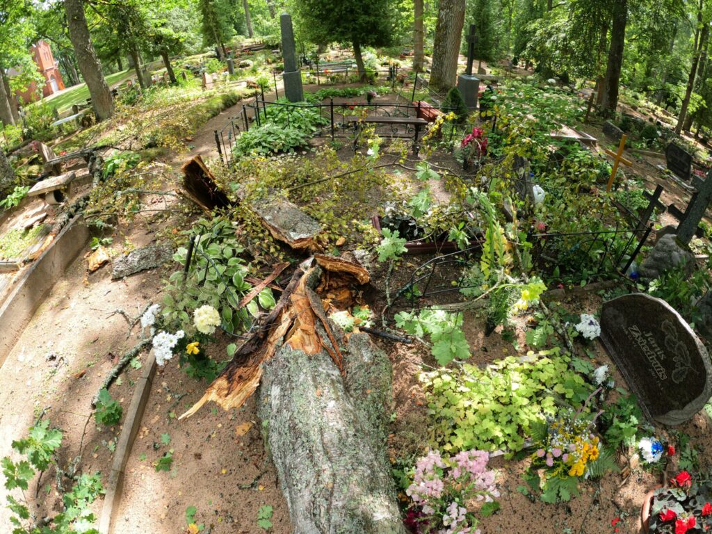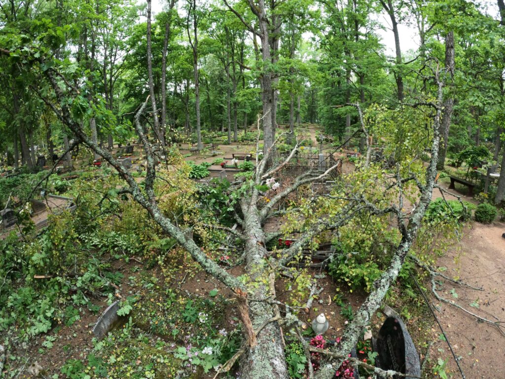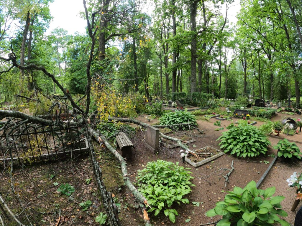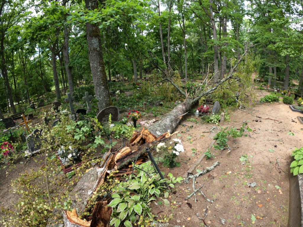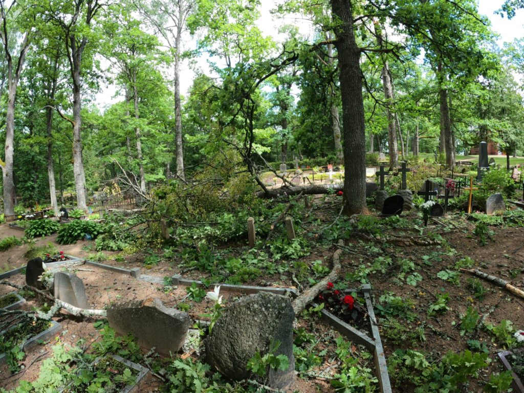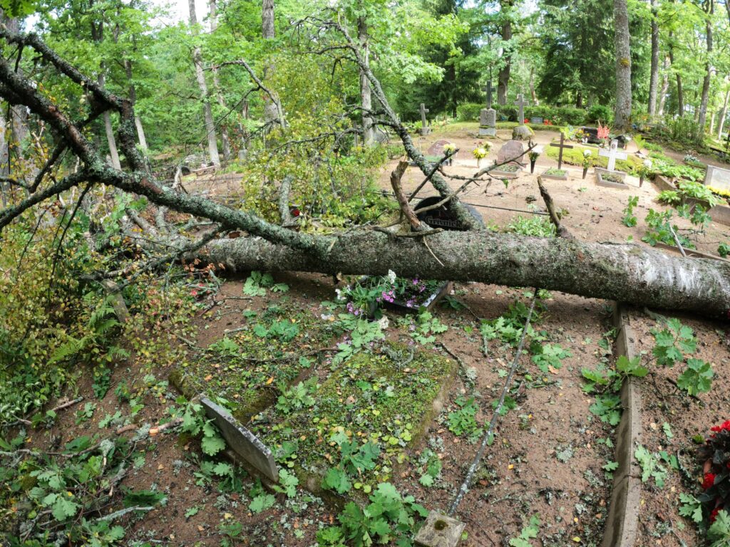Alūksnes kapu pārzine Ginta Stricka apliecināja, ka pirmdienas vētrā nolūzusi puse bērza un kritis ozola zars. “Pēc spēcīgākiem vējiem regulāri kapsētā ir lūzuši zari, līdzīgi arī šoreiz. Pieminekļi nav cietuši, salauzta sētiņa, bet viss ir atjaunojams. Piezvanīju kapu laukumiņu turētājiem, kuriem mūsu reģistros ir kontakti,” stāsta G. Stricka, solot jau nākamajā dienā kritušos kokus novākt. Viņa atminas, ka pēdējo reizi lielāka vētra kapsētā plosījusies 2019. gadā un gāzti pāris koki, bet ievērojamus postījumus neatminas.