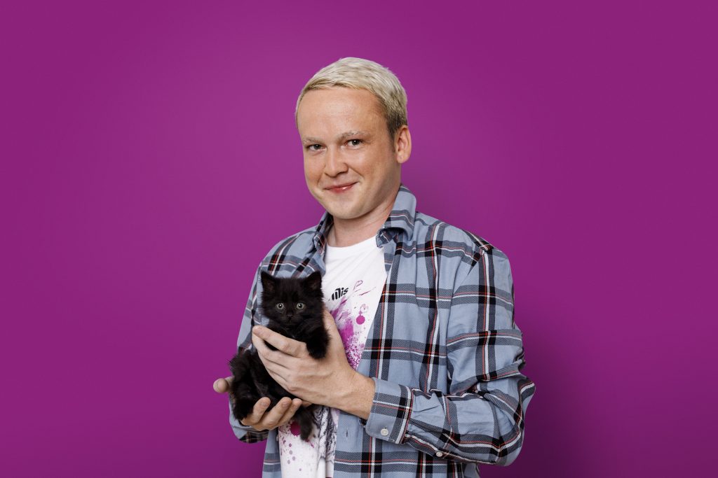Edgars Bāliņš, komiķis un kaķa Gāze īpašnieks: “Esmu kaķu cilvēks, jo šie mājdzīvnieki ir majestātiski, pašpārliecināti un izstaro īpašu enerģiju. Es aicinu ikvienu neuztvert šo aktivitāti kā mūžīgo sacensību starp kaķiem un suņiem, bet gan kā sirsnīgu žestu mūsu četrkājainajiem draugiem, parādot, ka mēs esam ar viņiem, un viņi mums ir ļoti dārgi.”