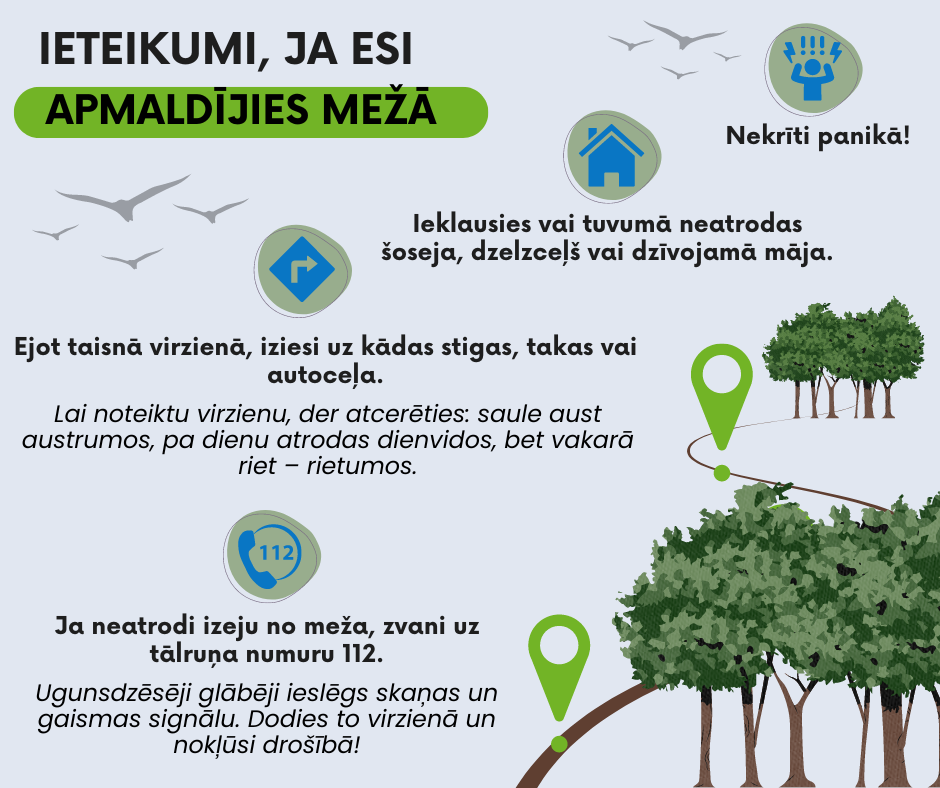 Ir būtiski zināt, kāda ir pareiza un droša rīcība, atrodoties mežā vai purvā, kā arī būt informētam par pareizu rīcību, ja tomēr sanācis apmaldīties.