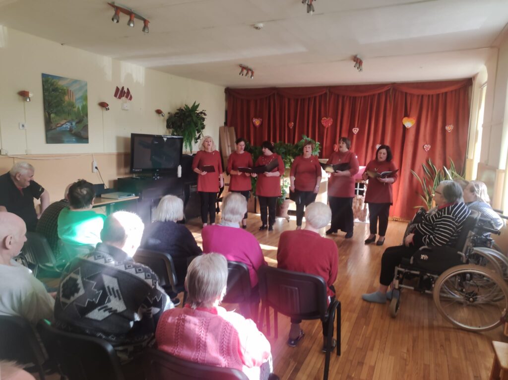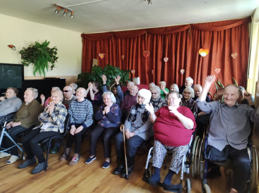 2.maijā aprūpes centru ar skanīgām latviešu spēka dziesmām pieskandināja Alūksnes novada Veclaicenes sieviešu vokālais ansamblis Ilzes Briediņas vadībā.