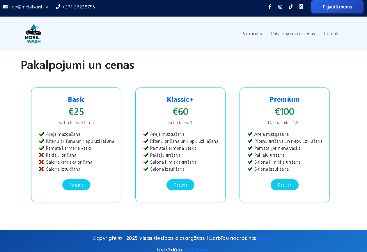 • Responsīvu lapu (darbojas uz telefona, planšetes un datora)