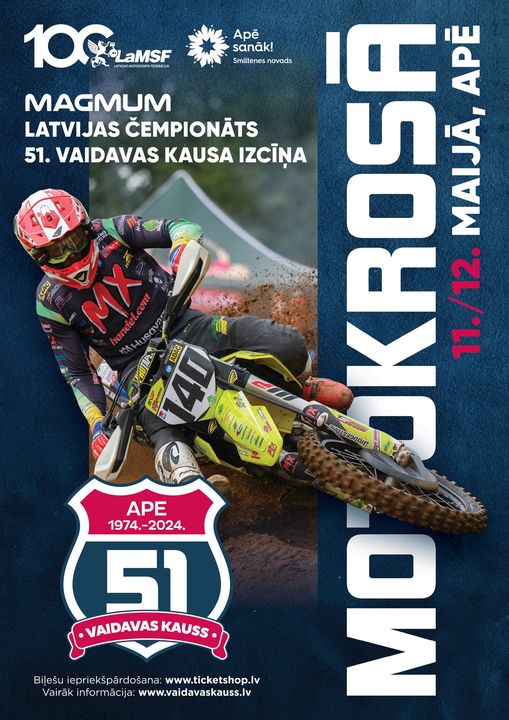 Pavasaris ir klāt un jau pavisam drīz Apes Mototrasi pieskandinās motoru rūkoņa un fanu balsis! 11. – 12. maijā tiekamies 51. Vaidavas Kausa izcīņā , kas šogad vienlaicīgi būs arī Magmum Latvijas Čempionāta posms motokrosā!