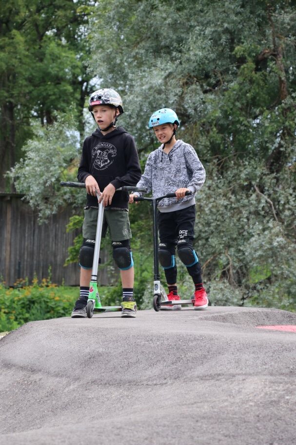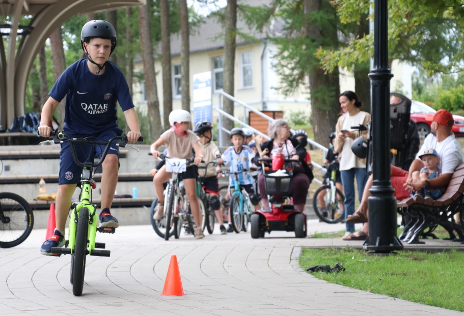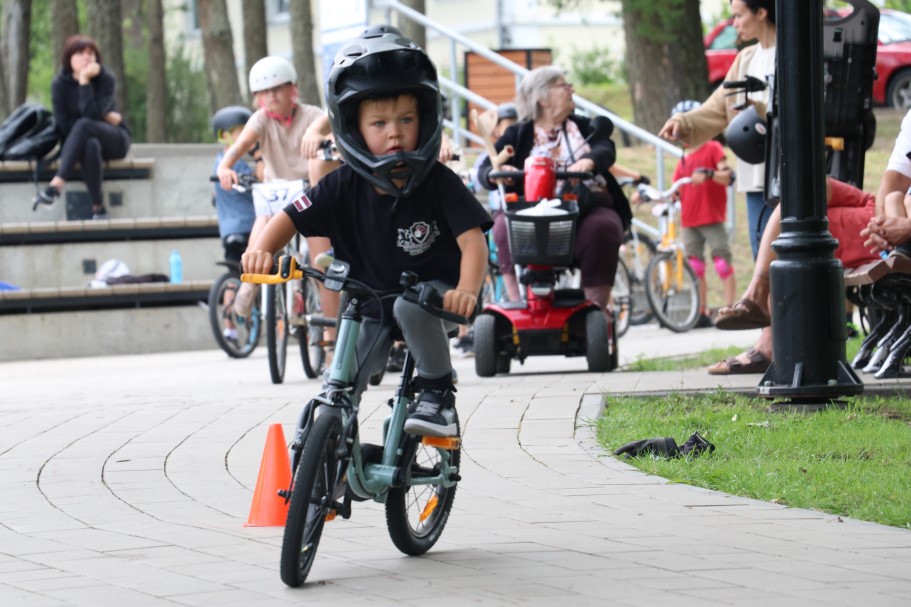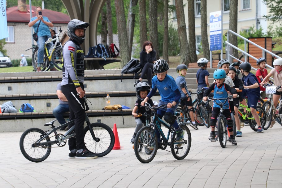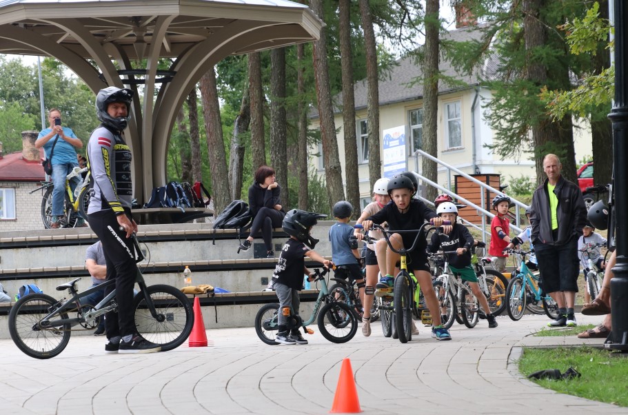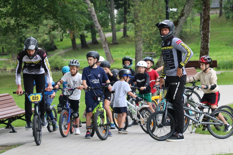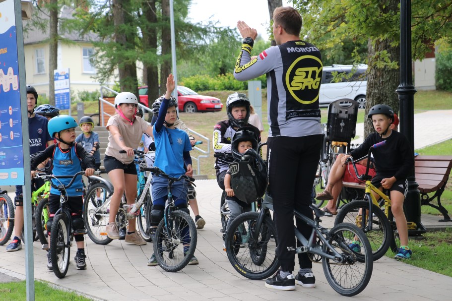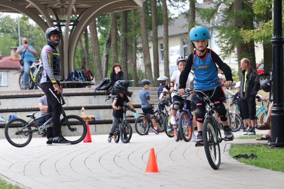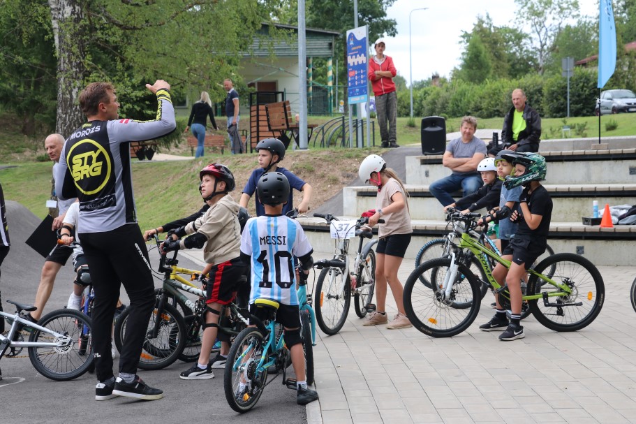 “Treniņu mērķi ir attīstīt koordināciju, balansu uz velosipēda. Braukšanu pa trasi, kā veiksmīgāk attīstīt ātrumu. Drošas braukšanas prasmes un pamatprincipus trasē, lai, ikdienā braucot, mēs tos ievērotu un būtu draudzīgāki. Protams, apgūstam arī specifiskākus elementus, kā lēkšanu ar velosipēdu un braukšanu uz aizmugurējā riteņa vēl mācīsimies nākamajos treniņos. Galvenais un pirmais ir koordinācija, līdzsvars un droša un ātra braukšana šajā trasē. Tas noderēs arī braukšanai uz ielas. Vidējais vecums bērniem, kuri piedalās, ir no sešiem līdz 14 gadiem, bet pieteikties ieteicams no piecu līdz 18 gadu vecumam, var arī vecāki, nav problēmu. Pārsvarā nāk puiši, bet šodien bija labākā meitene. Pilsētas svētku laikā velotrasē būs sacensības uz ātrumu, gan līdzsvaru. Būs visiem ko darīt, gan maziem, gan lieliem,” piedalīties aicina V. Morozs un, ja būs interese, organizēs treniņus biežāk, jo mūsu trase vairāk ir izklaidei, bet pamatus var