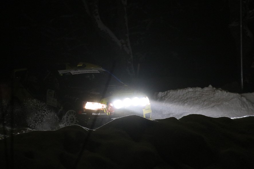 “Metālu Pasaule” – 12.54 km. Pēc pirmajiem diviem nakts ātrumposmiem absolūtajā ieskaitē “briest” sīva cīņa par pirmo vietu Latvijas duetu M.Sesks/ R.Francis un Igaunijas G.Jeets/ T.Taniel ekipāžu.