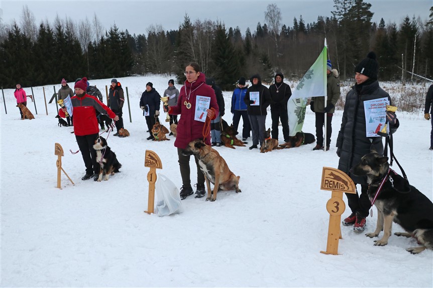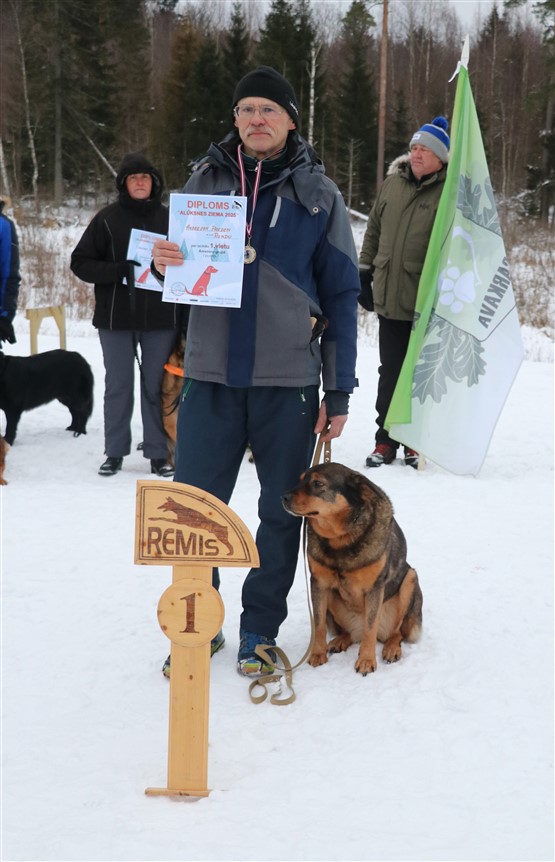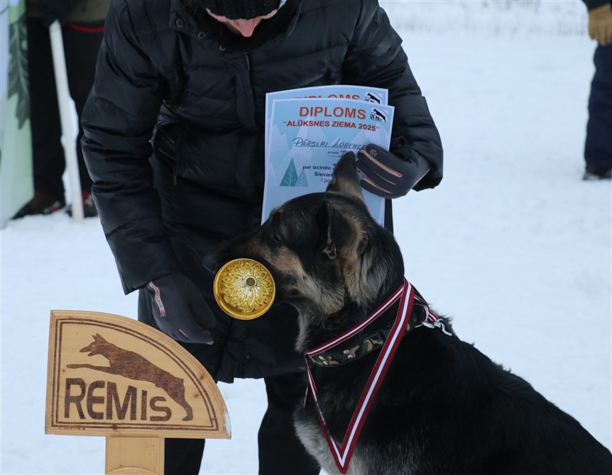 Alūksnes novada kinoloģiskās biedrības “Remis” treniņu un sporta laukumā aizvadītas šīs sezonas atklāšanas sacensības “Alūksnes ziema 2025”. Uz starta stājās 24 dalībnieki ar saviem četrkājainajiem draugiem. Viņi sacentās divos posmos, pirmajā bija apvienoti trīs posmi – piesaukšana, šķēršļu josla un aizturēšana vai “aporta” mantiņas atnešana. Otrais posms bija biatlons, kurā skrien, pārvieto smagumus un šauj – gan stāvus, gan guļus.