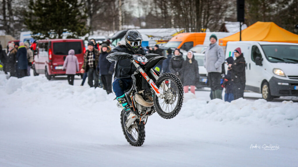 Sarunā ar Kvadri ATV 4×4 klases uzvarētāju Ronaldu Rami, viņš pastāstīja šis viņam bijis samērā agrs sacensību rīts, jo bija salīdzinoši tāls brauciens līdz trasei. “Nokļūstot galā punktā – tāda ziema, kādu Latvijā nebiju redzējis. Alūksnē, braucot ārā no DUS, bija jāskatās nevis ap krūmiem vai mājas stūra, bet ap augstām sniega grēdām. Sajūtas lieliskas,” stāsta Ronalds un turpina “pabraucot 30 km tālāk aiz Alūksnes, nonācām Liepnā. Skijoringa sportistiem sacensības notika pilnā sparā. Mēs tikmēr devāmies apskatīt trasi. Segums perfekts, tik labi uzsaldētu trasi sen neatceros. Pirmajā acu uzmetienā šķita, ka tā ir ļoti šaura un tāda, kā mēs sportistu valodā sakām – “vingrojamā”, bet vēlāk braucot braucienus, nemaz tik šaura tā nebija. Ja pietika meistarības, tad varēja arī apdzīt. Liels paldies Kasparam Bogomolam par trases izveidi,” saka Ronalds. Runājot par braucieniem, kopumā sportistam veicās ļoti labi. “Pirmo reiz sanāca startēt 90 grādos no starta taisnes. Tas deva ļoti lielas priekšrocības tiem, kas bija kopvērtējuma līderi. Abus startus izdevās izvirzīties pirmajā pozīcijā, kuru arī braucienu turpinājumā spēju noturēt. Aizvadīju divus stabilus braucienus, bez kļūdām un liela stresa, kas bija galvenais uzdevums, jo trase bija šaura un līkumota. Kopumā man ir liels prieks par šī gada ziemas motokrosa sezonu tāpēc, ka vispār kaut kas notiek,” tā Ronalds Ramis.