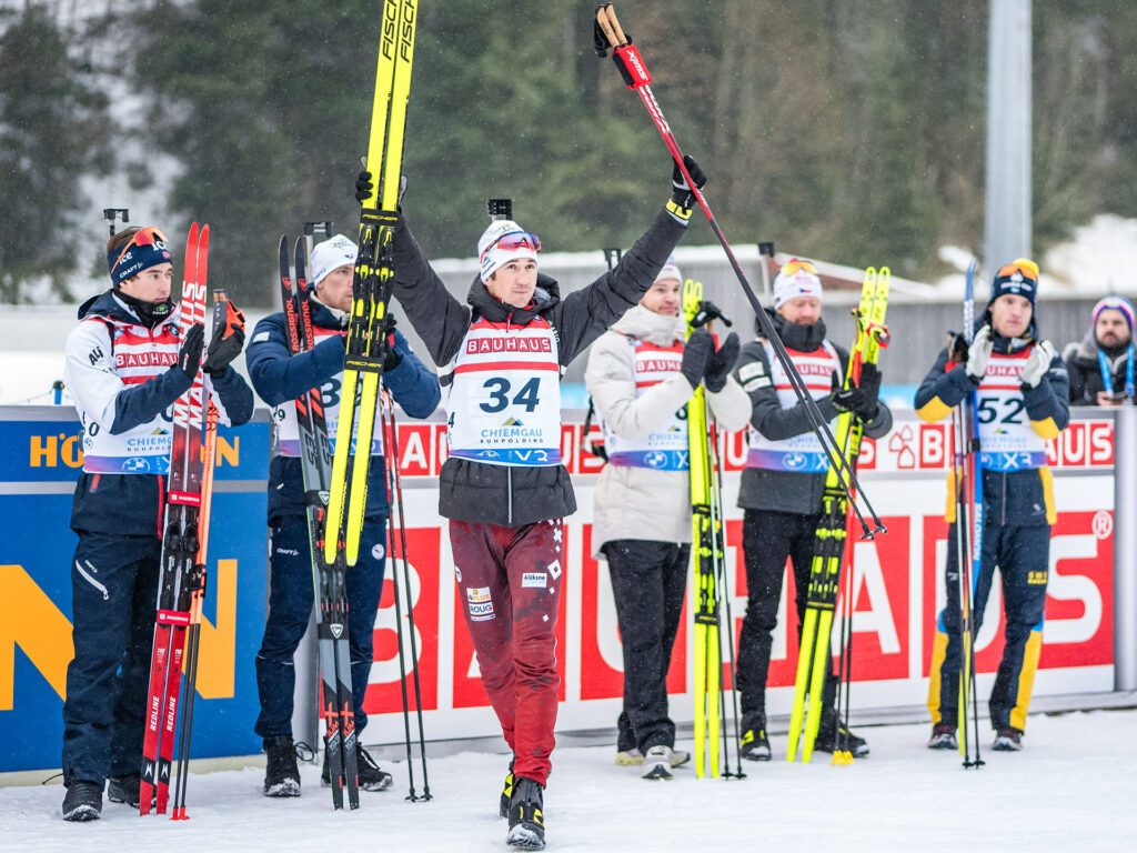 Ceturto vietu ar perfektu šaušanu, tikai diviem biatlonistiem 20 šāvienus izpildot bez kļūdām, ieņēma soms Olli Hīdensalo (+2:14,9), izcīnot savu lielāko panākumu līdzšinējā karjerā, piekto ar divām kļūdām šaušanā – šveicietis Niklass Hartvēgs (+2:15,5), bet sesto ar vienu soda minūti – Slovēnijas biatlonists Jakovs Faks (+2:18,8).